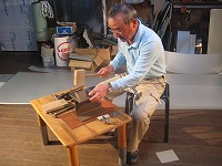 | 建築板金業を営んで45年。 2002年から金属製折り鶴に取り組んでいます。 厚さ0.25ミリのステンレス板を、使い慣れた道具でたたいていき、折り鶴を作ります。恒おんちゃんいわく、「紙の折り鶴のままじゃない。紙の重なりが少ないように設計し直すのが難しい」とのこと。 建築板金の分野で、平成16年度の「土佐の匠(※)」にも認定されています。